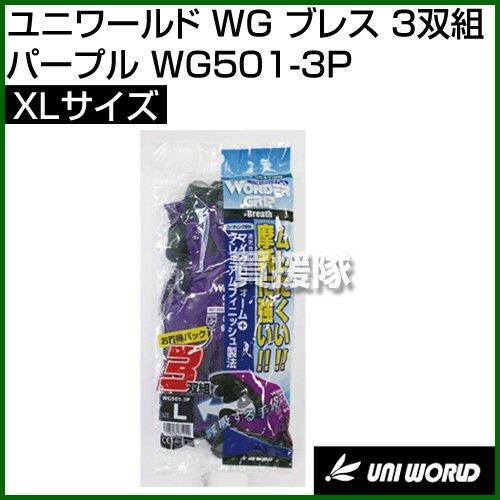 他の画像を見る 【メール便送料無料】耐摩擦性と耐油性にすぐれています。 ユニワールド 手袋 WG ブレス 3双組 パープル XLサイズ WG501-3P [カラー:パープル] [サイズ:XL] 買援隊 特別価格 ¥ 1,110 税込 カートに入れる お気に入りに登録する