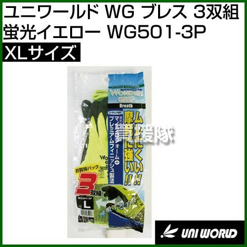 他の画像を見る 【メール便送料無料】耐摩擦性と耐油性にすぐれています。 ユニワールド 手袋 WG ブレス 3双組 蛍光イエロー XLサイズ WG501-3P [カラー:蛍光イエロー] [サイズ:XL] 買援隊 特別価格 ¥ 1,110 税込 カートに入れる お気に入りに登録する