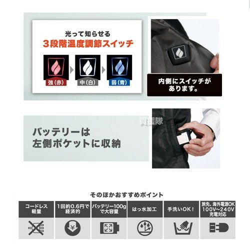 他の画像を見る 【送料無料】電源を入れて8秒で暖かい! プロモート 速暖 フィットベスト 男女兼用 SFB ブラック [サイズ:M~3L] 買援隊 特別価格 ¥ 14,000 税込 在庫切れ カートに入れる お気に入りに登録する