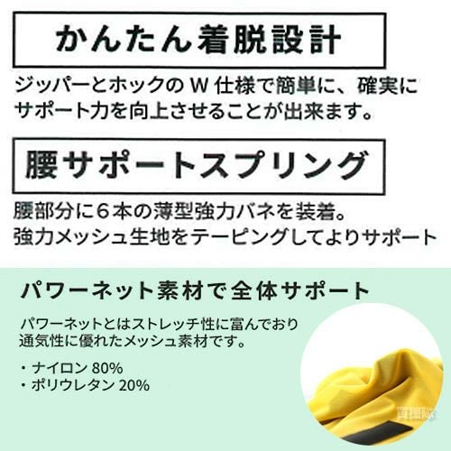 他の画像を見る 【送料無料】バネの力で強力アシストする無動力アシストスーツ SUN UP パワーサポートベスト (M~LL) 男女兼用 ネイビー メッシュ素材 買援隊 特別価格 ¥ 10,978 税込 カートに入れる お気に入りに登録する