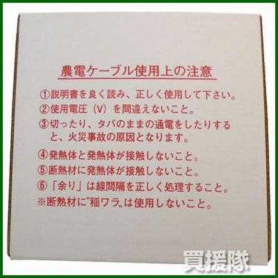 - 農電ケーブルは、必ず'タバ'を「ひろげて」発熱線と発熱線が接触しないようにしてから通電してください。