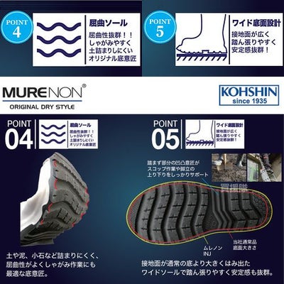 【長ぐつ 靴 シューズ 作業靴 靴内 ムレにくい ムレ 軽減 鋼製 先芯入り 安全靴 やわらかい しゃがみやすい 長持ち 衝撃吸収 足への負担軽減 クッション性 ワイドソール 安定感】