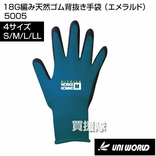 他の画像を見る 【送料無料】究極の18G編みからなる超素手感覚!! ユニワールド 18G編み天然ゴム背抜き手袋(エメラルド) 5005 [S・M・L・LLサイズ] 買援隊 特別価格 ¥ 633 税込 詳細を見る お気に入りに登録する