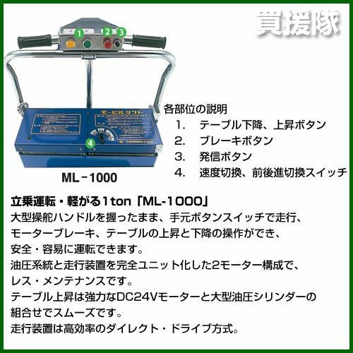 他の画像を見る 【送料無料】バッテリーによる走行とリフト 花岡車輌 ダンディリフトトラック モービルリフト ML-1000 買援隊 特別価格 ¥ 916,457 税込 在庫切れ 詳細を見る お気に入りに登録する