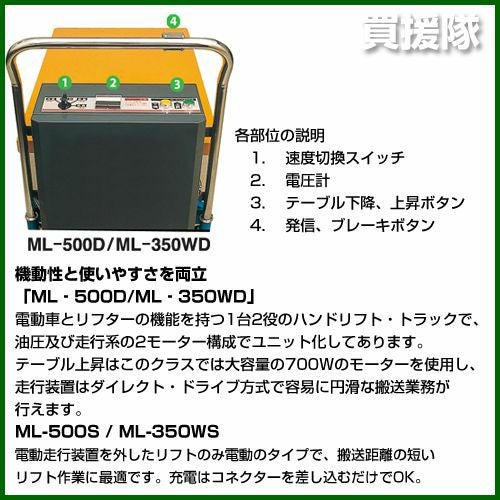 他の画像を見る 【送料無料】バッテリーによる走行とリフトで機動性と使いやすさを両立 花岡車輌 ダンディリフトトラック モービルリフト ML-500D 買援隊 特別価格 ¥ 585,618 税込 在庫切れ 詳細を見る お気に入りに登録する