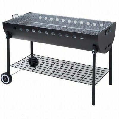 サイズ:使用時/約幅1200×奥行550×高さ800mm、収納時/約幅1200×奥行550×高さ280mm 本体重量:27kg 材質:本体・脚/鉄(粉体塗装)、網/鉄(クロームメッキ)、ロストル/鉄(亜鉛メッキ鋼板、電着塗装) 付属品:焼網(54×116cm) 適用人数:15~20人用 原産国:中国