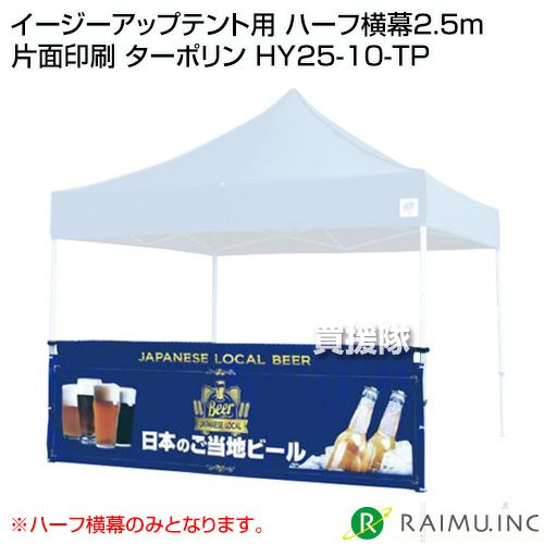 他の画像を見る 【送料無料】広告スペース、間仕切りをするアクセサリ 来夢 イージーアップテント用 ハーフ横幕2.5m 片面印刷 400Dポリエステル HY25-10-400D 買援隊 特別価格 ¥ 108,999 税込 在庫切れ 詳細を見る お気に入りに登録する