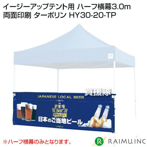 他の画像を見る 【送料無料】広告スペース、間仕切りをするアクセサリ 来夢 イージーアップテント用 ハーフ横幕3.0m 片面印刷 400Dポリエステル HY30-10-400D 買援隊 特別価格 ¥ 108,999 税込 在庫切れ 詳細を見る お気に入りに登録する