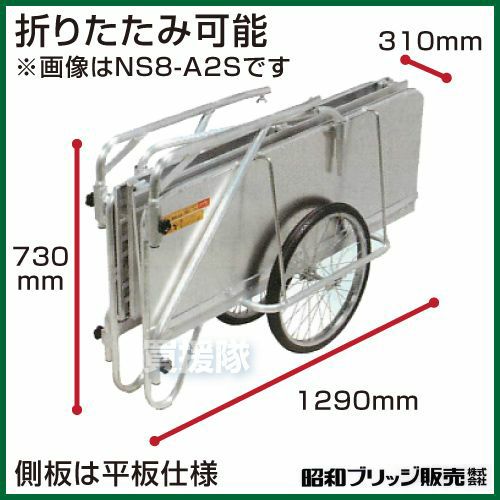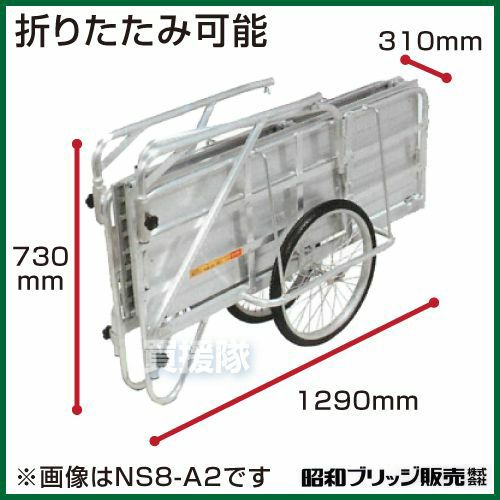 他の画像を見る 【送料無料】昭和ブリッジ 折りたたみ式 リヤカー 牽引 リアカー 昭和ブリッジ ハンディキャンパー NS8-A2S [800×1200 ノーパンクタイヤ 平板] 【折りたたみ リヤカー 牽引 リアカー 送料無料 ノーパンク】 買援隊 特別価格 ¥ 125,043 税込 詳細を見る お気に入りに登録する