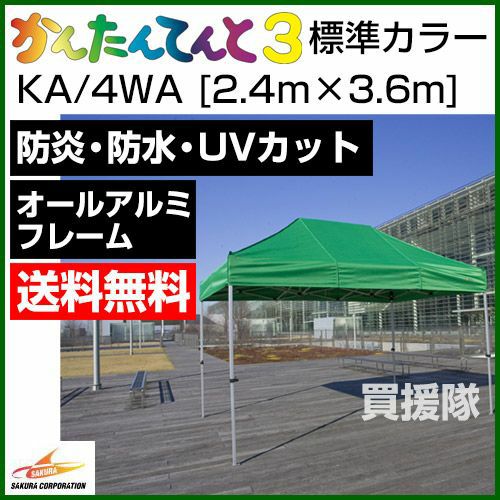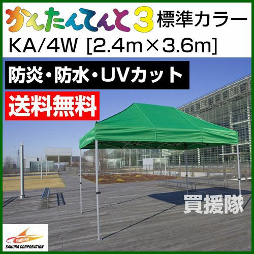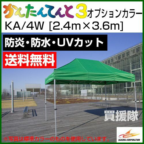 他の画像を見る 【送料無料】組立て・収納かんたん60秒で完了 《法人限定》かんたんてんと3 オプションカラー KA/4W [2.4m×3.6m] 買援隊 特別価格 ¥ 123,100 税込 詳細を見る お気に入りに登録する