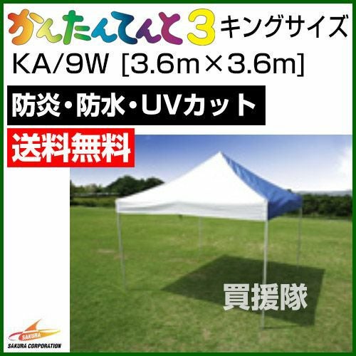 他の画像を見る 【送料無料】間(1間=1.8m)ベースのワンタッチテント 《法人限定》かんたんてんと3 キングサイズ KA/9W [3.6m×3.6m] 買援隊 特別価格 ¥ 134,400 税込 在庫切れ 詳細を見る お気に入りに登録する