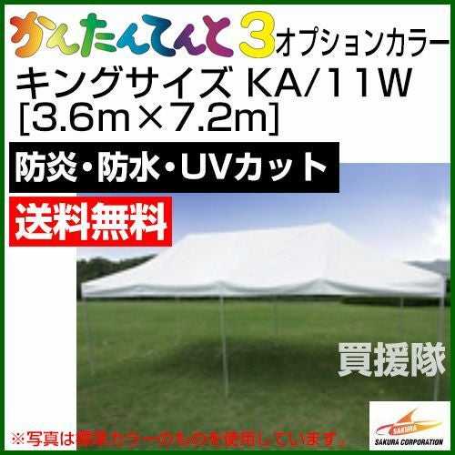 他の画像を見る 【送料無料】間(1間=1.8m)ベースのワンタッチテント 《法人限定》かんたんてんと3 キングサイズ オプションカラー KA/11W [3.6m×7.2m] 買援隊 特別価格 ¥ 242,400 税込 在庫切れ 詳細を見る お気に入りに登録する