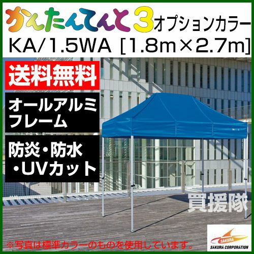 他の画像を見る 【送料無料】組立て・収納かんたん60秒で完了 《法人限定》かんたんてんと3 オプションカラー KA/1.5W [1.8m×2.7m] 買援隊 特別価格 ¥ 89,900 税込 詳細を見る お気に入りに登録する