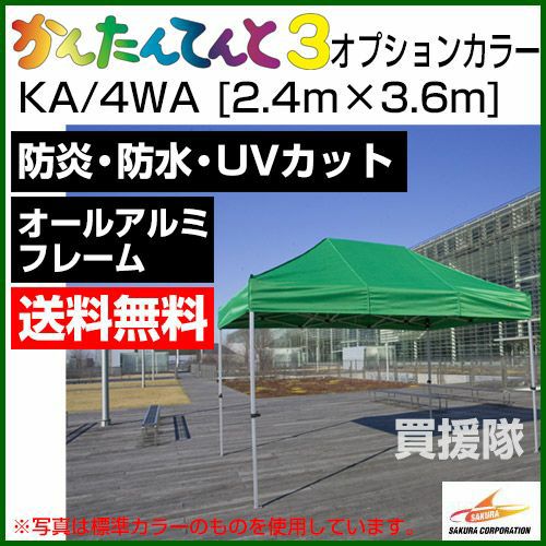 他の画像を見る 【送料無料】サビにつよい!だから、いつまでも美しい 《法人限定》かんたんてんと3 オプションカラー KA/3WA [2.4m×2.4m] 買援隊 特別価格 ¥ 85,800 税込 詳細を見る お気に入りに登録する