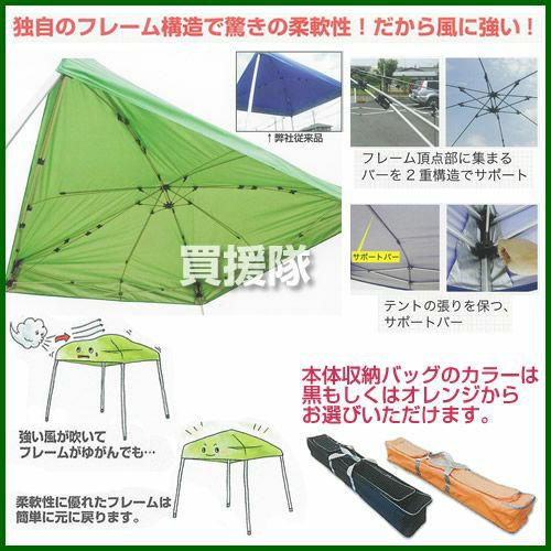 他の画像を見る 【送料無料】独自のフレーム構造で驚きの柔軟性!だから風に強い! あっとテント [2.6m×2.6m] AT/3W 買援隊 特別価格 ¥ 38,238 税込 在庫切れ 詳細を見る お気に入りに登録する