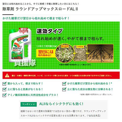 他の画像を見る 日産化学 ラウンドアップ 2L マックスロード 日産化学 ラウンドアップ 2L マックスロード AL II シャワータイプ 買援隊 特別価格 ¥ 1,680 税込 カートに入れる お気に入りに登録する