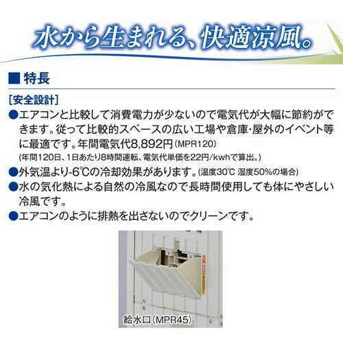 他の画像を見る 【送料無料】水から生まれる快適涼風。 《法人限定》ワキタ パワフル冷風機 涼(すずかぜ) MPR120-60HZ 買援隊 特別価格 ¥ 148,500 税込 在庫切れ 詳細を見る お気に入りに登録する