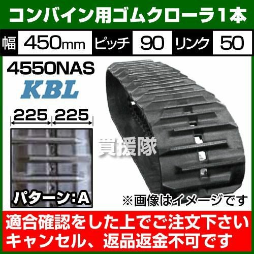 他の画像を見る 【送料無料】農業機械用のKBL製ゴムクローラ KBL コンバイン用 ゴムクローラ 4550NAS [1本][幅450×ピッチ90×リンク50][パターンA] 買援隊 特別価格 ¥ 154,440 税込 詳細を見る お気に入りに登録する