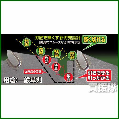 他の画像を見る 【送料無料】チップを保護するコブ付で耐久性抜群!強力斜埋込型 小林鉄工所 草刈機用チップソー 強力長持ちU 230X36P 657351 買援隊 特別価格 ¥ 3,340 税込 カートに入れる お気に入りに登録する