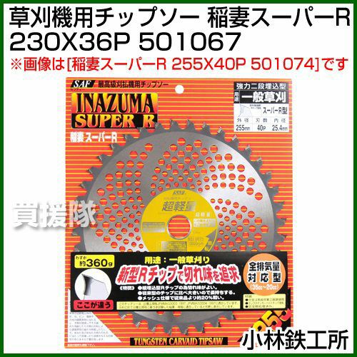 他の画像を見る 【送料無料】新型Rチップ精密研磨で切れ味抜群! 小林鉄工所 草刈機用チップソー 稲妻スーパーR 230X36P 501067 買援隊 特別価格 ¥ 4,240 税込 カートに入れる お気に入りに登録する