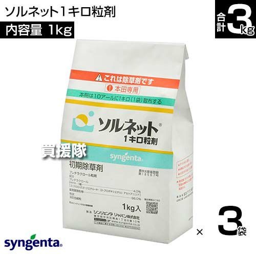 他の画像を見る 【送料無料】シンジェンタ ソルネット1キロ粒剤 1kg×3袋セット シンジェンタ ソルネット1キロ粒剤 1kg×3袋セット 買援隊 特別価格 ¥ 4,200 税込 カートに入れる お気に入りに登録する