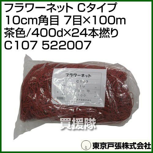 他の画像を見る 【送料無料】花・アスパラ・ネギ等の倒伏防止に 東京戸張 フラワーネット Cタイプ 10cm角目 7目×100m [茶色/400d×24本撚り] C107 522007 [カラー:茶色] 買援隊 特別価格 ¥ 9,350 税込 カートに入れる お気に入りに登録する
