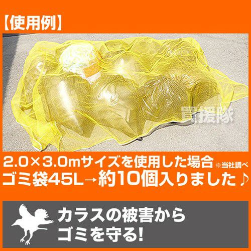 他の画像を見る 【送料無料】カラスのくちばしが入らない細かい綱目 【日本製】泰東 カラス対策・カラスよけゴミネット[イエロー・おもり(170g/m)入](2×3m) 買援隊 特別価格 ¥ 6,380 税込 カートに入れる お気に入りに登録する