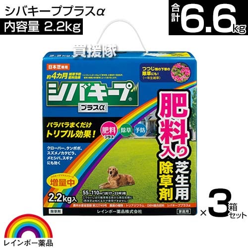 他の画像を見る 【送料無料】レインボー薬品 シバキーププラスα レインボー薬品 シバキーププラスα 2.2kg×6箱セット 買援隊 特別価格 ¥ 15,400 税込 カートに入れる お気に入りに登録する
