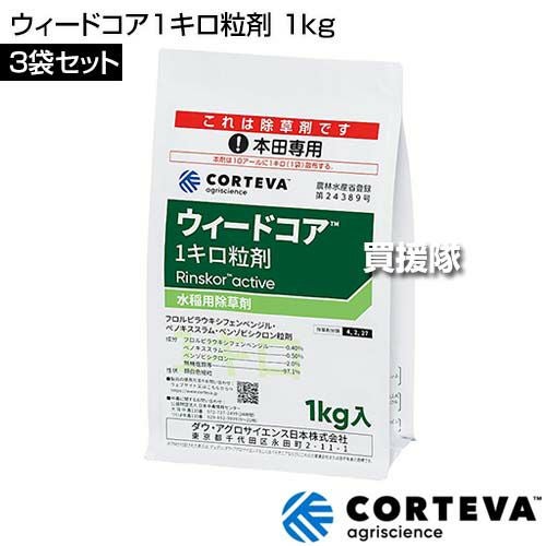 他の画像を見る 【送料無料】コルテバ ウィードコア1キロ粒剤 1kg×3袋セット コルテバ(日本農薬) ウィードコア1キロ粒剤 1kg×3袋セット 買援隊 特別価格 ¥ 14,300 税込 カートに入れる お気に入りに登録する