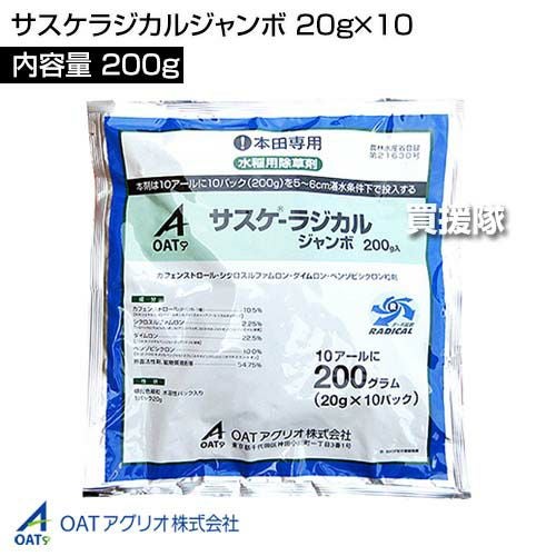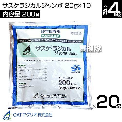 他の画像を見る 【送料無料】OATアグリオ サスケラジカルジャンボ 《法人限定》OATアグリオ サスケラジカルジャンボ 200g(20g×10)×20袋セット 買援隊 特別価格 ¥ 72,600 税込 在庫切れ 詳細を見る お気に入りに登録する