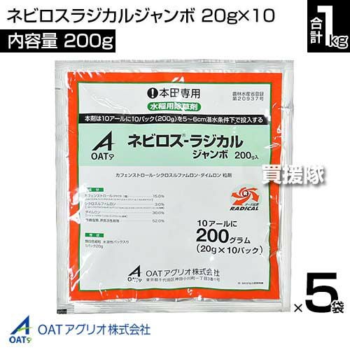 他の画像を見る 【送料無料】OATアグリオ ネビロスラジカルジャンボ 《法人限定》OATアグリオ ネビロスラジカルジャンボ 200g(20g×10)×20袋セット 買援隊 特別価格 ¥ 67,700 税込 詳細を見る お気に入りに登録する