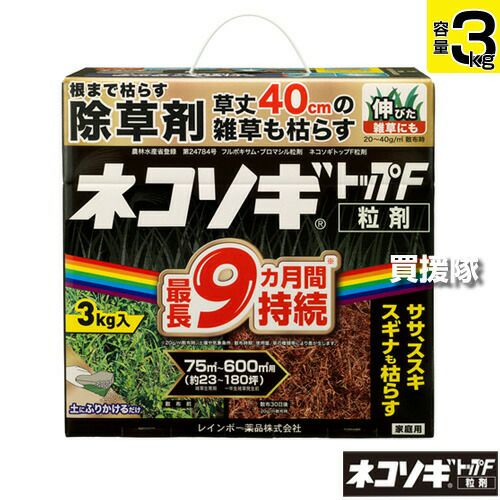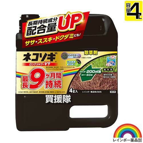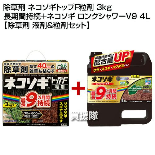 他の画像を見る レインボー薬品 ネコソギロングシャワーV9 4L レインボー薬品 除草剤 ネコソギトップF粒剤 3kg 長期間持続+ネコソギ ロングシャワーV9 4L 【除草剤 液剤&粒剤セット】 買援隊 特別価格 ¥ 8,160 税込 カートに入れる お気に入りに登録する