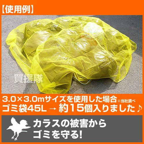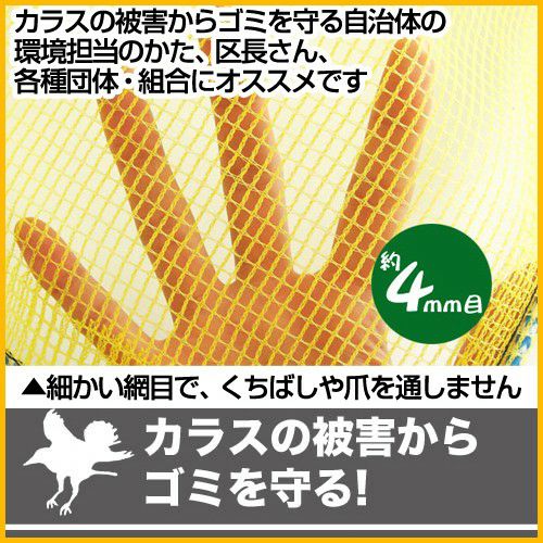 他の画像を見る 【送料無料】カラスのくちばしが入らない細かい綱目 【日本製】泰東 カラス対策・カラスよけゴミネット[イエロー・おもり(170g/m)入](3×3m) 買援隊 特別価格 ¥ 7,890 税込 カートに入れる お気に入りに登録する
