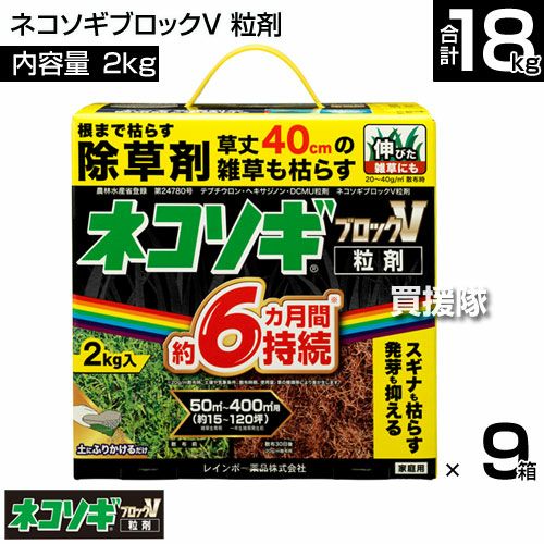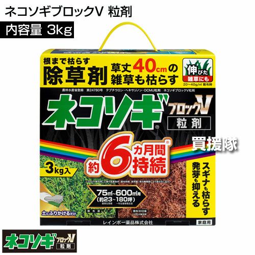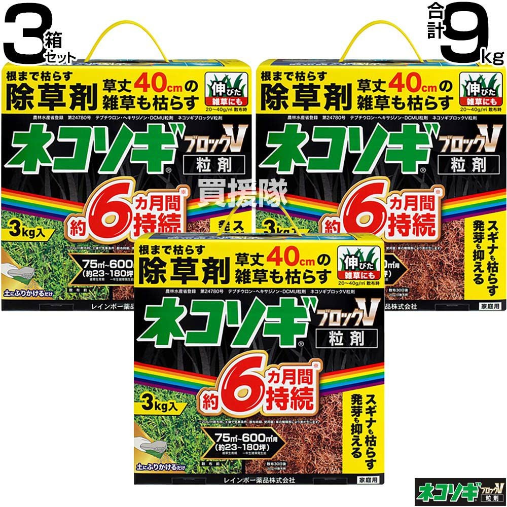 他の画像を見る 【送料無料】レインボー薬品 ネコソギブロックV 粒剤 3㎏×3箱 レインボー薬品 ネコソギブロックV 粒剤 3㎏×3箱 買援隊 特別価格 ¥ 13,000 税込 カートに入れる お気に入りに登録する