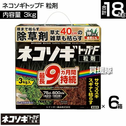 他の画像を見る 【送料無料】レインボー薬品 ネコソギトップF 粒剤 3㎏×6箱 レインボー薬品 ネコソギトップF 粒剤 3㎏×6箱 買援隊 特別価格 ¥ 24,500 税込 カートに入れる お気に入りに登録する