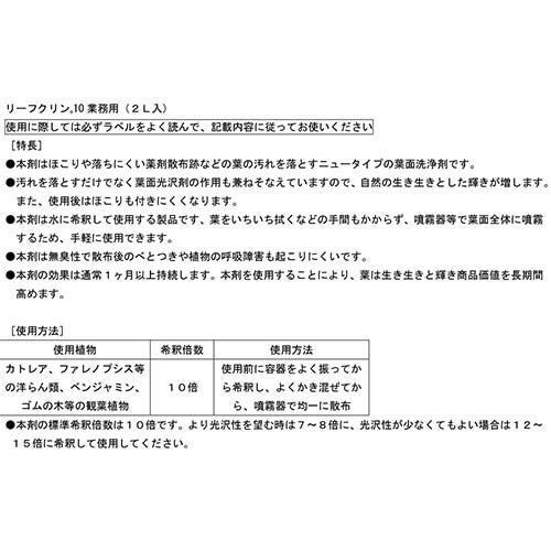 他の画像を見る 【送料無料】住友化学園芸 リーフクリーン10 業務用 2L×5個 住友化学園芸 リーフクリーン10 業務用 2L×5個 買援隊 特別価格 ¥ 49,200 税込 カートに入れる お気に入りに登録する