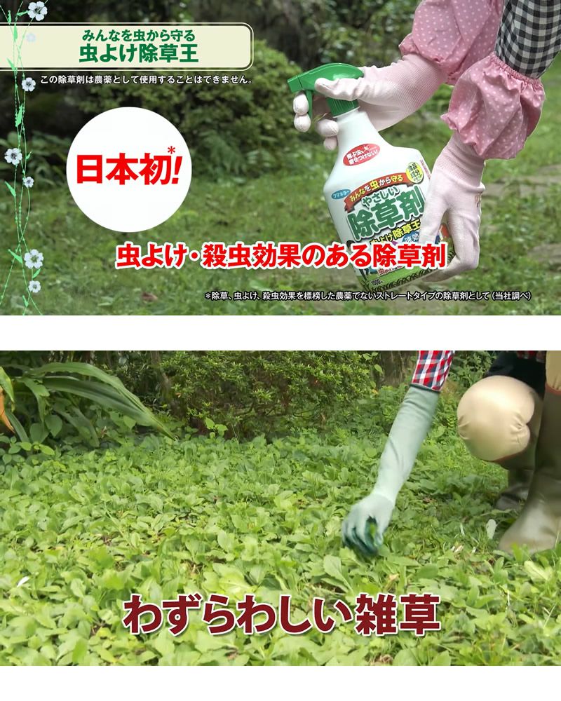 他の画像を見る 害虫の寄りつかない安心な庭に!虫よけ・殺虫もできる除草剤 虫よけ除草王 フマキラー 除草剤 虫よけ除草王 1000ml 買援隊 特別価格 ¥ 640 税込 カートに入れる お気に入りに登録する