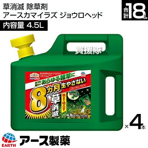 他の画像を見る 【送料無料】アース製薬 アースカマイラズ ジョウロヘッド アース製薬 草消滅 除草剤 アースカマイラズ ジョウロヘッド 4.5L×4本 買援隊 特別価格 ¥ 12,500 税込 在庫切れ 詳細を見る お気に入りに登録する