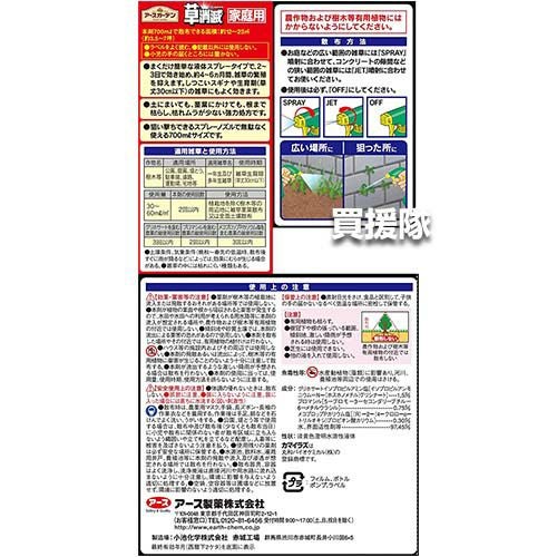 他の画像を見る 【送料無料】アース製薬 アースカマイラズ スプレー アース製薬 草消滅 除草剤 アースカマイラズ スプレー 700ml×8本 買援隊 特別価格 ¥ 7,100 税込 カートに入れる お気に入りに登録する