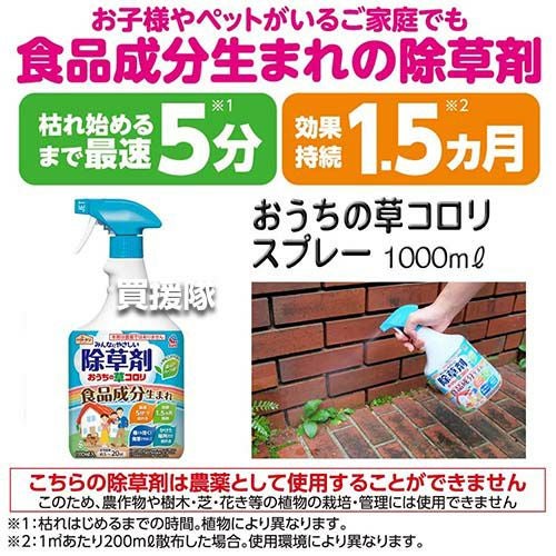 他の画像を見る アース製薬 おうちの草コロリ スプレー 1000ml アース製薬 除草剤 おうちの草コロリ スプレー 1000ml 買援隊 特別価格 ¥ 720 税込 カートに入れる お気に入りに登録する
