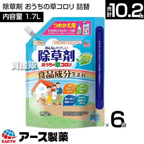 他の画像を見る 【送料無料】アース製薬 おうちの草コロリ 詰替 1.7L×6袋 アース製薬 除草剤 おうちの草コロリ 詰替 1.7L×6袋 買援隊 特別価格 ¥ 5,500 税込 カートに入れる お気に入りに登録する
