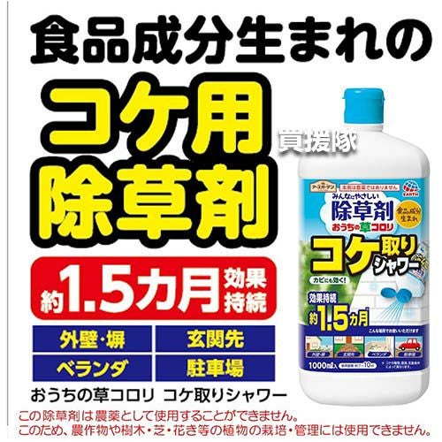 他の画像を見る 【送料無料】アース製薬 おうちの草コロリ コケ取りシャワー アース製薬 コケ取りシャワー おうちの草コロリ 除草剤 1000ml×8本 買援隊 特別価格 ¥ 6,200 税込 カートに入れる お気に入りに登録する