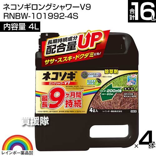他の画像を見る 【送料無料】レインボー薬品 ネコソギロングシャワーV9 4L レインボー薬品 ネコソギロングシャワーV9 4L×4本 買援隊 特別価格 ¥ 13,500 税込 会員特別価格 ¥ 12,140 税込 カートに入れる お気に入りに登録する